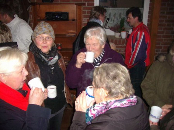 ![]() Bild anklicken für weitere Bilder Vor drei Jahren wurde in unserer Gemeinde die Aktion „Lebendiger Adventskalender“ gestartet. Sie fand in diesem Jahr mit vier Veranstaltungen ihre Fortsetzung. Es gab Zeit für Gespräche, und es wurden belegte Brote, Süßigkeiten sowie Tee, Punsch oder Glühwein gereicht, Weihnachtsgedichte und – geschichten vorgelesen und Weihnachtslieder gesungen, die von Gitarre, Schifferklavier oder Blasinstrumenten begleitet wurden. Den Anfang machten die Familien Braun, Dührsen, Brammer und Bülow. Die Gäste versammelten sich bei Peter und Trudel Braun im ehemaligen Saal des Schützenhofes. Gastgeber des zweiten Abends waren Volker Schumann, Inken Hanno, Thordis Bülow und Hauke u. Nina Sommer. Bedingt durch das unbeständige Wetter versammelten sich Jung und Alt in der Diele von Volker Schumann. Beim dritten Abend war die Familie Paulsen Gastgeber. Und heute nun der letzte Abend bei Marion und Rolf Carstens. Alle vier Abende waren gut besucht. Schon haben sich Familien für die Ausrichtung des Lebendigen Adventskalender im Jahr 2015 gemeldet. Text und Foto: Uwe Paulsen Volles Haus bei der traditionellen Seniorenweihnachtsfeier (eingetragen am: 18.12.2014) ![]() Bild anklicken für weitere Bilder Volles Haus bei der traditionellen Seniorenweihnachtsfeier der Gemeinden Delve, Hollingstedt u. Bergewöhrden Delve, Hollingstedt, Bergeöhrden: Große und kleine Künstler sorgen für ein abwechslungsreiches Programm bei der Seniorenweihnachtsfeier in der Sporthalle in Delve. Der Förderverein „Wir för uns e.V.“ unterstützt die Gemeinden bei der Organisation. Bürgermeisterin Helmi begrüßte im Namen der drei Gemeinden Delve, Hollingstedt und Bergewöhrden die Seniorinnen und Senioren zu der traditionellen Weihnachtsfeier mit Kaffee und Kuchen in der bis auf den letzten Platz besetzten festlich geschmückten Sporthalle in Delve. Mit dem gemeinsam gesungen Lied „Alle Jahre wieder“ begann dann die stimmungsvolle Weihnachtsfeier, und auf der Bühne trugen große und kleine Künstler zum kurzweiligen Rahmenprogramm bei. Die Kinder des Kindergarten Sonnenstern unter der Leitung von Gaby Kobs und Hanna Schimansky und Franka Marx erfreuten die Gäste mit ihren zur Vorweihnachtszeit passenden Gedichte, Geschichten und Blockflötenspiel. Pastor Cahnbley las eine Weihnachtsgeschichte aus den Kindheitserinnerungen in der Weihnachtszeit von Senta Berger vor, und Petra Elmenthaler verbreite mit ihrer unglaublichen Geschichte über die Nutzung des Sauerkrauts als Tannenbaumschmuck oder Beilage zum Weihnachtsmenü viel Vergnügen. Die von Inge Frahm vorgetragene plattdeutsche Geschichte über ein besonderes Weihnachtsgeschenk stimmte die Gäste dann wieder etwas besinnlicher. Musikalisch begleitet wurde die vorweihnachtliche Veranstaltung von den Delver Chören unter der Leitung von Heinke Marx mit bekannten Weihnachtsliedern. Sangesfreudige Unterstützung von den Gästen bekam die Kinder - u. Jugendakkordeongruppe unter der Leitung von Nicole Jessen aus Thielenhemme bei ihren gekonnt vorgetragenen Weihnachtsmelodien. Eltern und ehrenamtlichen Helfer des Fördervereins Vereins Wi för uns e.V. sorgten vor, während und nach der Veranstaltung für einen reibungslosen Ablauf. In seinem Schlusswort bedankte sich Bürgermeister Peter Maas bei allen Mitwirkenden, die vor und hinter den Kulissen für diese gelungene Weihnachtsfeier sorgten. Zum Abschluss wurde dann gemeinsam das Lied „Oh du fröhliche ...“ gesungen. Es war ein wirklich gelungener Nachmittag. Text und Fotos: Uwe Paulsen Adventsklönnachmittag 2014 (eingetragen am: 08.12.2014) ![]() Bild anklicken für weitere Bilder Die Gemeinde hatte zum traditionellen Adventsklönschnack eingeladen. Gemütliches Beisammensein für Jung und Alt. Auch in diesem Jahr besuchten wieder viele Bürgerinnen und Bürger, Kinder und Jugendliche den Adventsklönschnack im Dorfgemeinschaftshaus. Vor dem Eingang unter dem Anbau wurden Punsch, Kakao und selbstgebackene Waffeln angeboten. Im Haus gab es gegen eine Spende für die Dorffestkasse Kaffee, Tee und Kuchen. Johanna Rau begeisterte mit ihrem Vortrag „Aus der Weihnachtsbäckerei“ und Hanna Carstens erfreute die Gäste mit vorweihnachtlichen Klängen auf ihrer Trompete. Auch der Weihnachtsmann kam vorbei und verteilte nach einem Gedichtvortrag die ersten Geschenke an die “Kleinen“. Bürgermeisterin Helmi Rau bedankte sich bei den vielen Torten- und Kuchenspenderinnen und den Helfern für die Gestaltung dieses Nachmittags. Sicher ist: im nächsten Jahr gibt es wieder einen „Adventsklönschnack“. Im Bild von Kai Rönnau Johanna Rau in ihrer Weihnachtsbäckerei Text: Uwe Paulsen Sozialverband Hollingstedt feiert Advent (eingetragen am: 29.11.2014) Bild zum vergrößern anklicken Die Adventsfeier des Sozialverbandes wird immer wieder gern besucht. In diesem Jahr trafen sich wieder viele Mitglieder und Freunde des Ortsverbandes zum vorweihnachtlichen Event. Der Ortsverband Hollingstedt im Sozialverband Deutschland (SoVD) hatte auch in diesem Jahr wieder zu seiner schon traditionellen Adventsfeier mit Grünkohlessen und anschließender Kaffeetafel ins Dorfgemeinschaftshaus eingeladen. In dem weihnachtlich geschmückten Raum konnte die amtierende Vorsitzende Ingelore Dithmer Mitglieder und Freunde im fast vollbesetzten Dorfgemeinschaftshaus begrüßen. Sie bedankte sich bei den vielen Helfern für die Unterstützung bei der Vorbereitung diese Adventsfeier und bei den Familien Siem und Brümmer für den gestifteten und geschmückten Tannenbaum. Nach dem traditionellen Grünkohlessen und Kaffee mit Weihnachtsgebäck wurden noch ein paar Runden BINGO gespielt und ein von Karl Heinz Bülow gebastelter Holzweihnachtsbaum amerikanisch versteigert. So kam noch ein bisschen Geld in die Kasse des Ortsverbandes. Im Bild: Vorbereitung Kaffee u. Weihnachtsgebäck Text u. Foto: Uwe Paulsen Volkstrauertag 2014 - Gedenken an Krieg, Elend und Gewalt (eingetragen am: 16.11.2014) 