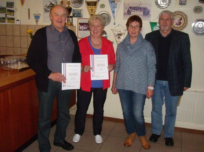 ![]() Bilder anklicken für weitere Bilder Organisiert von Hilke Paulsen veranstaltete die Gemeinde Hollingstedt ein Straßenbosseln für Groß und Klein. Insgesamt 40 Kinder, Jugendliche und Erwachsene trafen sich bei schönem, kühlen Wetter an der Bushaltestelle. Schnell waren sechs Mannschaften ausgelost, die dann, ausgerüstet mit Bosselkugeln und Bollerwagen mit Marschverpflegung, den Rundkurs durch die Süderheide, über Hallith, Fuchsberg und Viertel zurück zum Ausgangsort starteten. Die sportlichen Aktivitäten mussten zur Aufnahme aufmunternder Getränke immer mal wieder unterbrochen werden. Mit der Einnahme eines kräftigen Eintopfs wurde dieser erlebnisreiche Nachmittag beendet. Text und Foto: Uwe Paulsen Jahreshauptversammlung SoVD (eingetragen am: 07.03.2015) Bild zum vergrößern anklicken Auf der Jahreshauptversammlung konnte die 2. Vorsitzende Ingelore Dittmer zahlreiche Mitglieder und als Gäste Bürgermeisterin Helmi Rau und den stellv. Kreisvorsitzender Günter Hollm begrüßen. Die Vorsitzende berichtete über die Aktivitäten des vergangenen Geschäftsjahres. Doppelkopf, Grillabend, Weihnachtsfeier, Bastelabende, Besuche bei Jubilaren und Teilnahme an verschiedenen Veranstaltungen außerhalb des Ortsverbandes zeugen von einer aktiven und nachhaltigen Arbeit. Eine gesunde Kassenlage präsentierte Schatzmeisterin Rosi Wnuck den Mitgliedern. Folgende Mitglieder wurden für Vorstandsarbeit und langjährige Mitgliedschaft im Sozialverband geehrt. 10 Jahre Mitgliedschaft: Karl-Heinz Bülow, 10 Jahre Mitgliedschaft und 5 Jahre ehrenamtliche Tätigkeit: Traute Braun. 10 Jahre Ehrenamt: Uwe Paulsen. Große Geschlossenheit zeigten die Mitglieder bei der Neuwahl des Vorstandes. Ohne Gegenstimmen wurde Peter Dittmer zum 1. Vorsitzenden und Peter Braun zum stellv. Schatzmeister gewählt. Nach dem Motto „Essen hält Leib und Sozialverband zusammen“, gab es noch einen Imbiss für die Mitglieder und Gäste. Im Bild die Geehrten mit der 2. Vorsitzenden und Günter Hollm. Sportabzeichen für 36 Kinder und Jugendliche (eingetragen am: 03.03.2015) Delve/Hollingstedt Übungsleiterin Hilke Paulsen (TSV Hollingstedt) und Übungsleiter Ruthard Kobs (TSV Delve) waren mit der Beteiligung und den erzielten Ergebnissen sehr zufrieden. 36 Kinder und Jugendliche konnten in der Schule Delve nach vielen Übungsstunden für die Abnahme des Deutschen Sportabzeichens ihre Urkunden und Anstecknadeln in Empfang nehmen und anschließend zur Belohnung ins Schwimmbad nach Heide fahren. Hier die Namen der erfolgreichen Sportlerinnen und Sportler Gold: Macius Dahm, Kaya Falck, Stina Jeronimus, Anne Paulsen, Maxi Rothgänger, Hannes Schimanski, Johannes Sommer, Milena Thomas, Mattis Wilcke, Nele Wilke, Jana Wilke, Sünne Jeronimus, Hannah Schimanski, Klaas Jessen, Kjell Jessen, Sina Hansen, Jannis Rolfs und Marie Hennecken . Silber: Lilly Dahm, Trixi Dührsen, Finn-Rico Eggers, Niklas Hanno, Mattis Hansen, Levke Hansen, Tjelle Rolfs, Oke Schuhardt, Thure Schuhardt, Jette Sommer, Folke Sommer, Mascha Wilcke, Merle Wöhlk, Johanna Rau, Gesa Horn und Fabio Eggers. Bronze: Felix Hanno und Oke Paulsen Die Sportabzeichen - Saison 2015 beginnt im Mai. Infos über die Bedingungen zur Erreichen des Deutschen Sportabzeichens: www.deutsches-sportabzeichen.de Uwe Paulsen Bargener Fähre weiterhin auf einem guten Kurs (eingetragen am: 12.02.2015) Bild zum vergrößern anklicken Delve/Erfde. Die Bargener Fähre ist weiterhin auf einem guten Kurs. Über 3500 Gäste nutzten die Angebote. Fährverein auch auf Messen präsent. Neues und Bewährtes für die kommende Saison. Einstimmige Ergebnisse bei Vorstandswahlen. Auf der gutbesuchten Jahresversammlung des Fährvereins Bargener Fähre e.V. im Fährhaus in Bargen informierte der Vorsitzende Claus Hansen aus Scheppern die anwesenden Mitgliederinnen und Mitglieder in seinem Jahresbericht über die umfangreichen Aktivitäten des Vereins in der abgelaufenen Fährsaison. Der Jahrhundertsommer 2014 hat eine erfolgreiche Saison beschert. Mit mehr als 3500 zufriedenen Gästen auf der Fähre, unter ihnen auch ein Brautpaar mit Gästen anlässlich einer standesamtlichen Trauung, kann der Fährverein mit seinen 30 ehrenamtlichen Fährleuten auf ein gutes Jahr 2014 zurückblicken. Ein besonderes naturnahes Erlebnis für die vielen Gäste waren die Fahrten mit dem Elektroantrieb der Fähre in den frühen Morgenstunden oder in der Dämmerung. Am Ende der Saison fand die jetzt schon traditionelle Lichterfahrt statt. Boote vom Wassersportverein Bargen begleiteten die Fähre bei herrlichem Spätsommerwetter auf ihrer letzten Fahrt der Saison. Musikalisch wurde diese Veranstaltung von Peter Schlüter aus Delve mit seiner Handharmonika und dem Delver Männerchor unter der Leitung von Heinke Marx begleitet. Zusätzlich zu dem bewährten Programm wird der Fährverein für die Saison 2015 „Rad und Fähre“. Es besteht jetzt die Möglichkeit, einen Tour mit dem Fahrrad und eine mit der Fähre zu fahren. Quer durch alle Angebote liegen bereits jetzt über 500 Buchungen vor. Die Fährleute waren nicht nur auf dem Wasser unterwegs. Auf den Ehrenamtsmessen in Schleswig, Rendsburg und Brunsbüttel, dem Regionaltag in Friedrichstadt und der Kropper Mondscheinnacht konnte sich der rührige Verein einer breiten Öffentlichkeit präsentieren. Erfreut zeigte sich Claus Hansen über den Fährleutenachwuchs. Drei neue Kräfte gehören jetzt zu den dem Stamm der Fährleute. Durch das Engagement der ehrenamtlich tätigen Fährmänner und -frauen sei man in der Lage, schwarze Zahlen zu schreiben, sagte Kassenwart Rainer Schuhmacher aus Bargen bei der Vorstellung seines Jahresberichtes. Bei den Wahlen wurde Bernd Dührsen aus Delve-Schwienhusen als 2. Vorsitzender, Ida Rütten-Schneider aus Bargen als Schriftführerin und Heinz Schröder aus Wesseln als ihr Stellvertreter einstimmig in ihren Ämtern bestätigt. Als Kassenprüferin fungiert für die nächsten zwei Jahre Christa Hinrichs aus Hennstedt. Eign