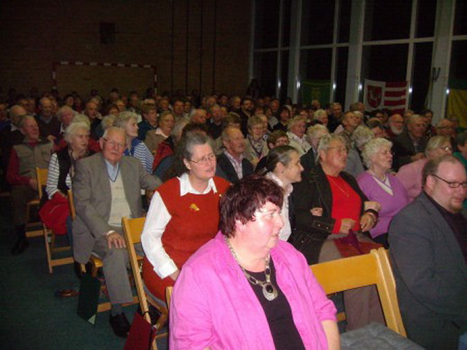 Vier Windmühlen in der Nähe unserer Gemeinde in Betrieb genommen Nach relativ kurzer Zeit wurden vier der insgesamt sieben Windkraftanlagen des Bürgerwindpark Eider in unmittelbarer Nähe unserer Gemeinde in Betrieb genommen. Sie sind mit ihrer Gesamthöhe von ca. 170 m weithin sichtbar und dominieren deutlich unser Landschaftsbild. Daran werden sich unsere Bürger wohl so schnell nicht gewöhnen. Im Bild die vier WEA fotografiert vom Schöpfwerk Bergewöhrden. Text und Bild: Uwe Paulsen Seniorenweihnachtsfeier der Gemeinden Delve, Hollingstedt u. Bergewöhrden (eingetragen am: 15.12.2015) ![]() Bild anklicken für weitere Bilder Volles Haus bei der traditionellen Seniorenweihnachtsfeier der Gemeinden Delve, Hollingstedt u. Bergewöhrden Große und kleine Künstler sorgen für ein abwechslungsreiches Programm bei der Seniorenweihnachtsfeier in der Sporthalle in Delve. Der Förderverein „Wir för uns e.V.“ unterstützt die Gemeinden bei der Organisation. Delves Bürgermeisterin Petra Elmenthaler begrüßte im Namen der drei Gemeinden Delve, Hollingstedt, Bergewöhrden und des Fördervereins Wi för Uns e.V. die Seniorinnen und Senioren aus den drei Dörfern zu der traditionellen Weihnachtsfeier mit Kaffee und Kuchen in der bis auf den letzten Platz besetzten festlich geschmückten Sporthalle in Delve. Mit dem gemeinsam gesungen Lied „Alle Jahre wieder“ begann dann die stimmungsvolle Weihnachtsfeier, und auf der Bühne trugen große und kleine Künstler zum kurzweiligen Rahmenprogramm bei. Die Kinder des Delver Kindergarten Sonnenstern und der Eiderlandschule Pahlen erfreuten die Gäste mit ihren zur Vorweihnachtszeit passenden Gedichte, Lieder und Geschichten. Nachdenklich stimmte die von Pastor Jens Cahnbley vorgetragene Geschichte vom Traum der drei Bäume von Angela E. Hunt, und Petra Elmenthaler verbreitete mit ihrer Geschichte vom alten Weihnachtsbaumständer viel Vergnügen. Musikalisch begleitet wurde die vorweihnachtliche Veranstaltung von den Delver Chören unter der Leitung von Ulrike Dannhauser mit bekannten Weihnachtsliedern. Sangesfreudige Unterstützung von den Gästen bekam die Kinder - u. Jugendakkordeongruppe unter der Leitung von Nicole Jessen aus Pahlen bei ihren gekonnt vorgetragenen Weihnachtsmelodien. Die ehrenamtlichen Helfer des Fördervereins Vereins Wi för Uns e.V. sorgten vor, während und nach der Veranstaltung für einen reibungslosen Ablauf. In ihrem Schlusswort bedankte sich Hollingstedts Bürgermeisterin Helmi Rau bei allen Mitwirkenden, die vor und hinter den Kulissen für diese gelungene Weihnachtsfeier gesorgt haben. Zum Abschluss wurde dann gemeinsam das Lied „Oh du fröhliche ...“ gesungen. Es war ein wirklich gelungener Nachmittag. Mehr Bilder unter Bilder und Fotos auf dieser Seite. Text und Foto: Uwe Paulsen Sozialverband Hollingstedt feiert Advent (eingetragen am: 30.11.2015) Bild zum vergrößern anklicken Der Ortsverband Hollingstedt im Sozialverband Deutschland (SoVD) hatte auch in diesem Jahr wieder zu seiner traditionellen Adventsfeier mit Grünkohlessen und anschließender Kaffeetafel ins Dorfgemeinschaftshaus eingeladen. In dem weihnachtlich geschmückten Raum konnte der Vorsitzende Peter Dittmer Mitglieder und Freunde im vollbesetzten Dorfgemeinschaftshaus begrüßen. Er bedankte sich bei den vielen Helfern für die Unterstützung bei der Vorbereitung dieser Adventsfeier und bei den Familien Siem und Brümmer für den gestifteten und geschmückten Tannenbaum. Nach dem traditionellen Grünkohlessen und Kaffee mit Weihnachtsgebäck trug Reimer Böger, Organisator des plattdeutschen Krinks in Albersdorf, lustige und besinnliche plattdeutsche Geschichten und Gedichte vor. In gemütlicher Runde saß man anschließend noch bei netten Gesprächen zusammen. Im Bild Reimer Böge beim Vortrag Text u. Foto: Uwe Paulsen Volkstrauertag 2015 (eingetragen am: 15.11.2015) Bild zum vergrößern anklicken Bürgerinnen und Bürger unserer Gemeinde, Fahnenabordnungen der Reitersparte und des TSV Hollingstedt, die Kamradinnen und Kameraden der FFW, der Msuikzug Delve und der Delver Männerchor trafen sich zur Kranzniederlegung am Ehremal in der Verschönerung unserer Gemeinde. Bürgermeisterin Helmi Rau und ihr 1. Stellvertreter Lars Paulsen erinnerten in ihren Ansprachen nicht nur an die Millionen Menschen, die in den beiden Weltkriegen zu Opfern wurden. 100 Jahre nach Ausbruch des Ersten und 75 Jahre nach Beginn des Zweiten Weltkrieges müsse man ohnmächtig erkennen, dass die Menschheit offenbar nicht friedlich und in Eintracht miteinander leben könne. Ukraine-Krise, Syrien-Konflikt, kriegerische Auseinandersetzungen in Afghanistan zeigten deutlich, dass bis in die Gegenwart hinein Menschen unter Gewalt und Terrorismus leiden, um ihr Überleben kämpfen und aus ihrer Heimat in eine ungewisse Zukunft flüchten müssen. Dritter plattdeutscher Abend (eingetragen am: 08.11.2015) Bild zum vergrößern anklicken Bekannte Dithmarscher Plattschnackers und eine Nachwuchskraft in der Delver Sporthalle Der Verein Wi för uns e.V. zur Förderung von Kinder-, Jugend-, Kultur-, Natur- und Landschaftsprojekten in der ehemaligen Kirchspielslandgemeinde Delve mit den Dörfern Delve, Hollingstedt und Bergewöhrden hatte zum dritten plattdeutschen Abend in die Delver Sporthalle eingeladen. Kreispräsident Hans-Harald Böttger, die Bürgermeisterinnen Petra Elmenthaler aus Delve und Helmi Rau aus Hollingstedt zeigten sich erfreut über die große Resonanz und dankten allen, die zum Gelingen dieser Veranstaltung beigetragen haben. Die Organisatoren konnten sich über ein volles Haus freuen, und die vielen Gäste über das abwechslungsreiche Programm und die ausgezeichnete Versorgung in der Veranstaltungspause. Seinen ersten Auftritt als Plattschnacker hatte der 10 jährige Tjelle Rolfs aus Delve. Mit seinen gekonnt vorgetragenen Schnacks und Döntjes erfreute er das Publikum. Die plattdeutschen Lieder der Delver Chöre unter der Leitung von Ulrike Dannhauser, Ir